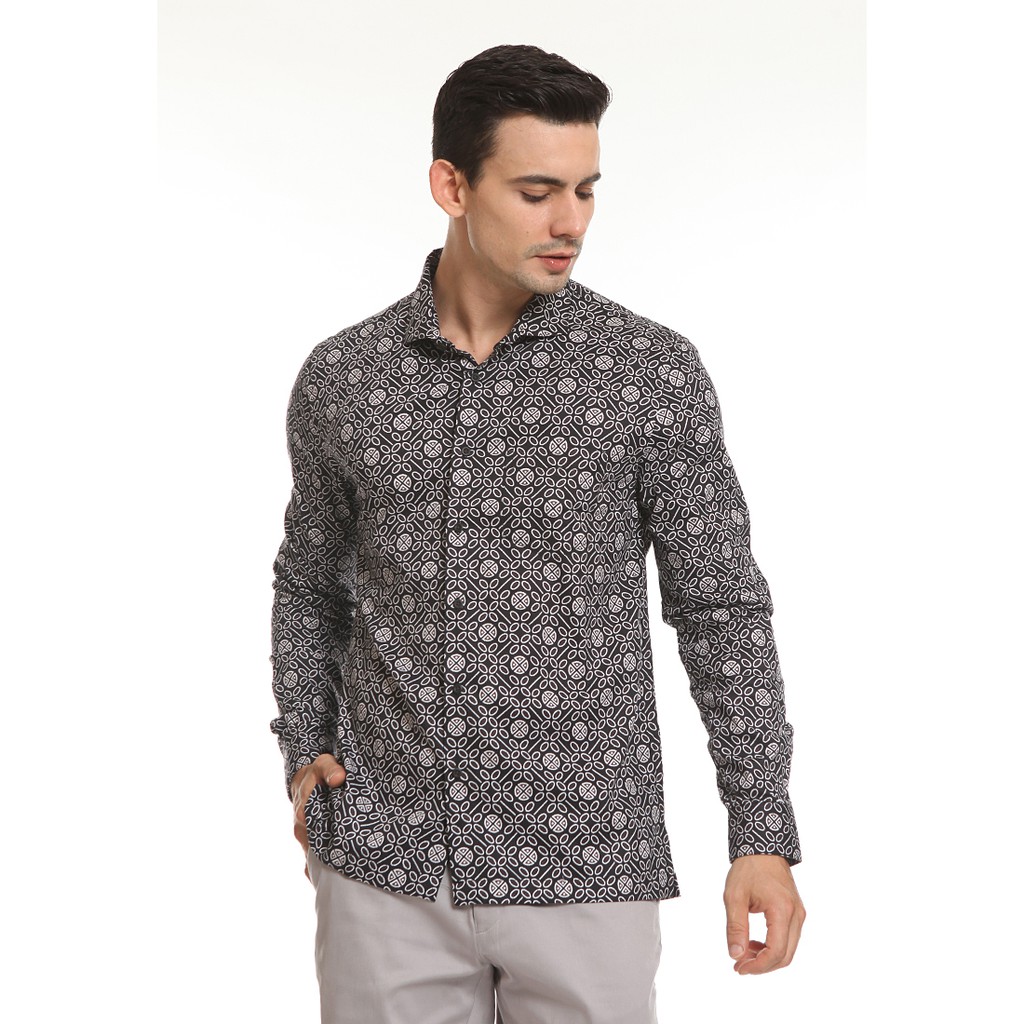 Name: Manzone Kemeja Batik Pria Lengan Panjang Modern Fit Binawa 1-bestbuy-black