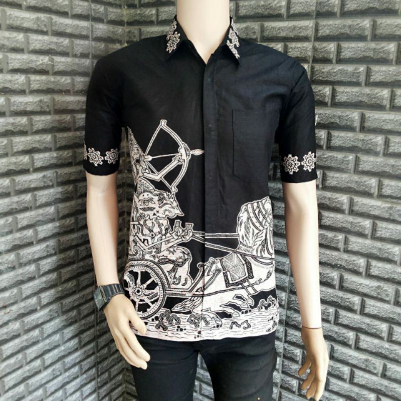 Name: Hem Pria Batik Monocrome Lengan Pendek Terbaru Size M.l.xl, Kemeja Batik, Baju Batik Pria Terbaru
