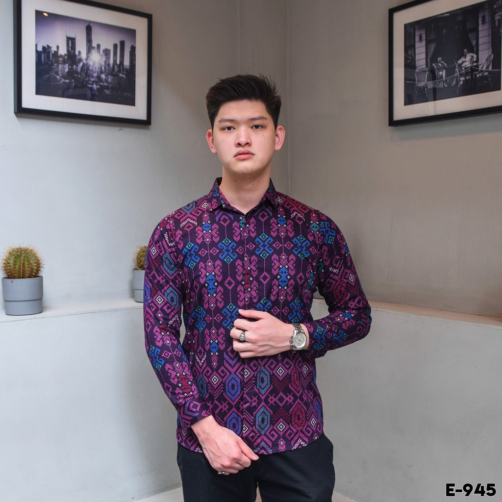 Suplier Pakaian di Kabupaten Lombok Utara Sanvanina E-945 Kemeja Batik Songket Lengan Panjang Slim Fit Sumba Purple Songket dari Tidak Ada Merek Kota Tangerang